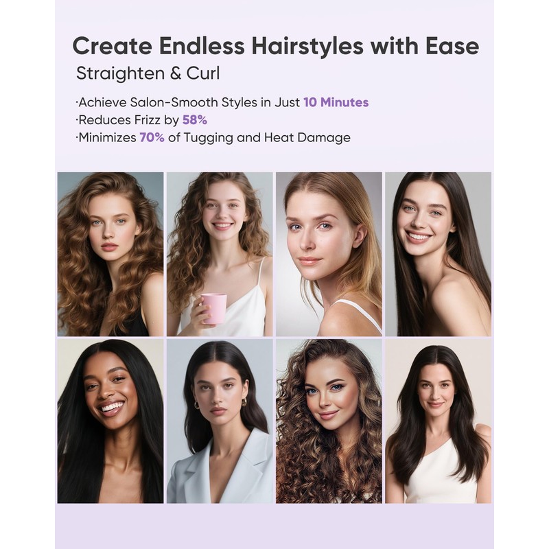 - 3D Floating Plates Flat Iron: This ceramic hair straightener is designed with advanced 3D floating plates that feature ultra-fine 0.01mm gaps. Its flexible structure ensures that the hair straightener applies pressure more evenly to your hair. As a result, our hair flat iron reduces pulling and breakage by up to 70%, ensuring smoother glides and salon-quality styles in minutes.