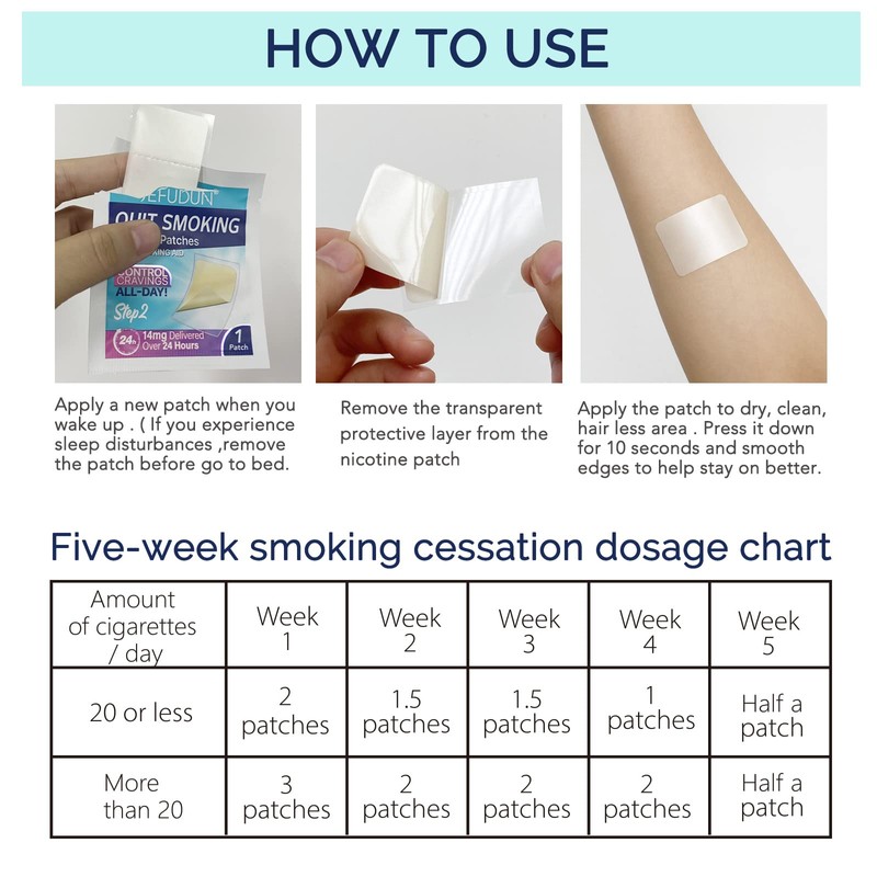 - 30 Count Patches, Reducing It --- If you are having it 10 or less per day, Start from Step 2 stop aid is recommended, it comes 30 count, after completely usage, it makes you close to your successful quit program