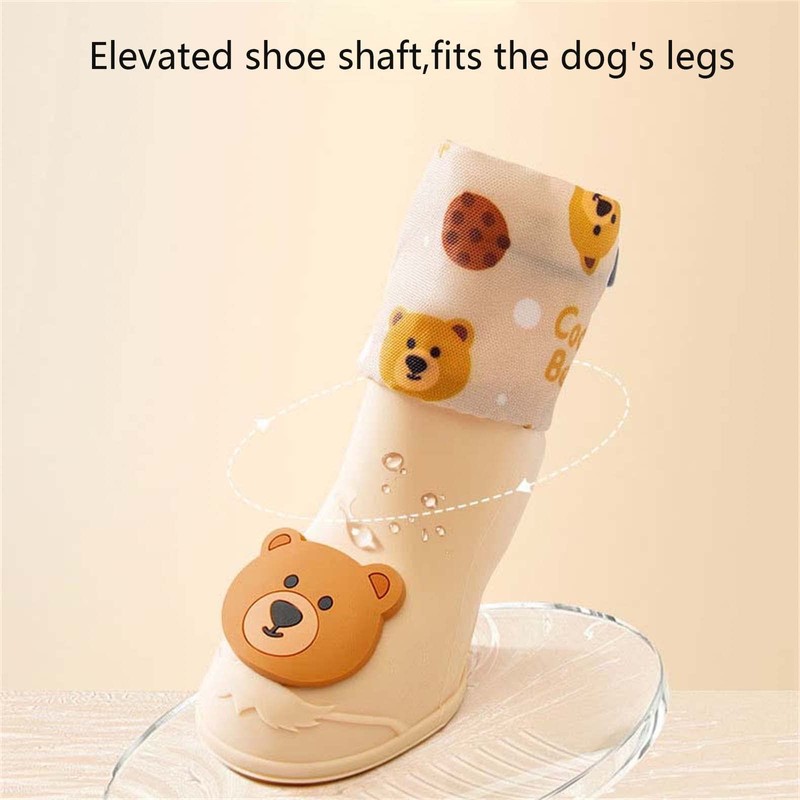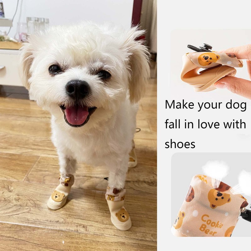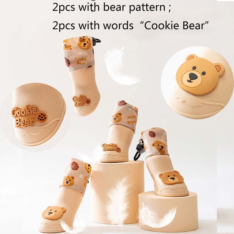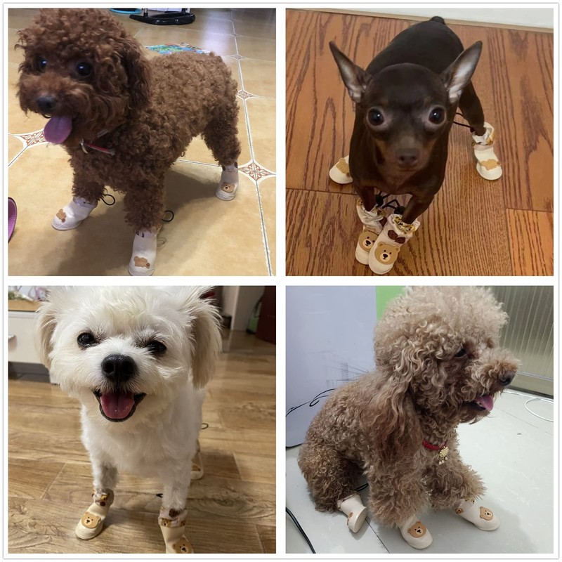 Yeduzyn 4Pcs Waterproof Dog Boots Dog Shoes for Snow and Rain Teddy Pomeranian Bichon Middle and Small Dogs (Brown Bear, Small)
