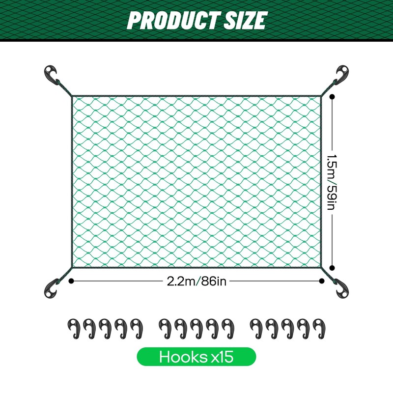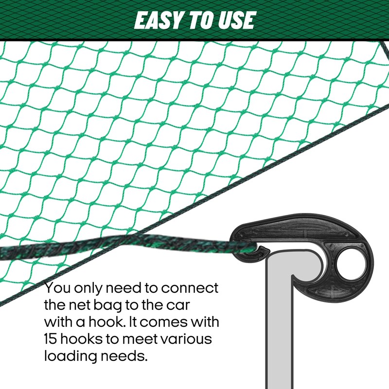 - 🚞【With 15 Hooks】With 45mm square grid design, so as to adapt to different sizes of goods and prevent small items from falling off the car on the way.We will give away you 15 additional hooks to help you for safely transporting items in pickups, trucks, trailers, ATVs/UTVs, boats, and during camping trips or dump runs. You can quickly strap down the loads by simply moving hooks from one mesh square to another, no tools required. This eliminates cumbersome tying down and makes installation quick and easy.