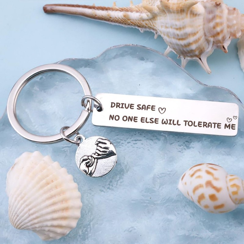- Drive Safe Keyring: This is a cute keychain for boyfriend. Simple and modern design, warm and meaningful text, cute and funny patterns, make it a unique keychain gift for boyfriend/girlfriend, hang it on car keys, this keychain can accompany your boyfriend/girlfriend for a long time.