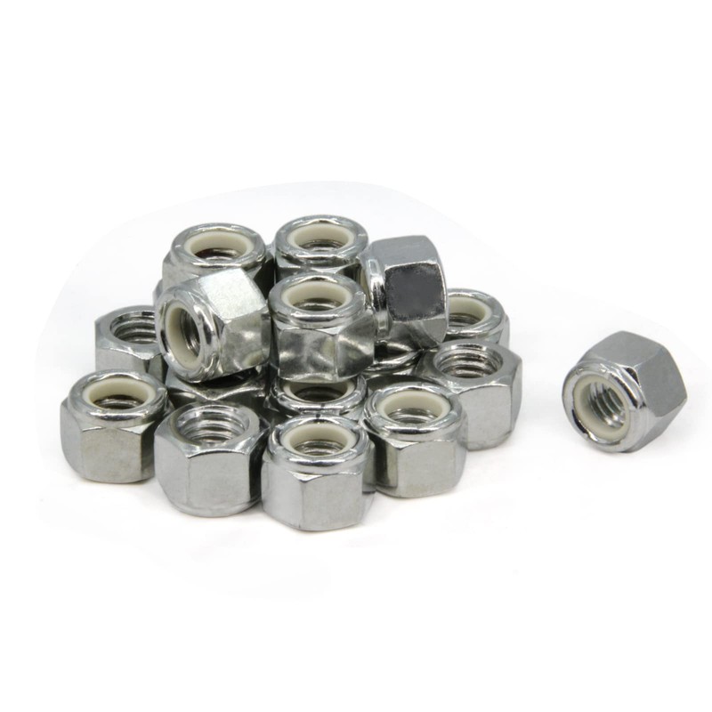 - Hex Lock Nuts Material: made of high quality Carbon Steel White Zinc Plated and Nylon Insert,durable,high hardness,excellent corrosion resistance and anti-rust ability and excellent performance