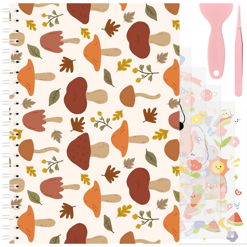 YeeCASE Reusable Sticker Book Collecting Album, A5 Size 60 Pages Flowers Blank Stickers Organizer Book, 6” x 8.3” Sticker Collection Storage Book with Tools and 80 PCS stickers (Mushroom, A5)