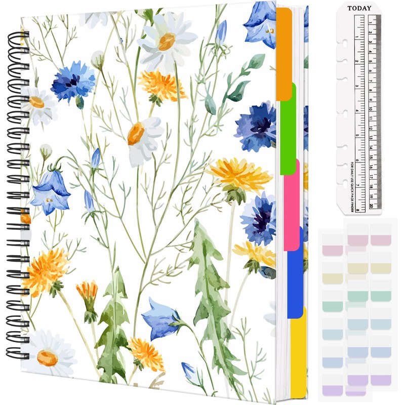 YeeCASE Spiral Notebook 9”x11”, 5 Removable Dividers, 300 Pages/150 Sheets Floral Notebookfor Women Men, College Ruled A4 Spiral Notebook Journaling Notebook for Work, School (A4, Blue Flower)