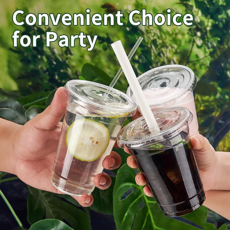 - Flat Lids for Easy Transport: The included flat lids fit securely on the cups, preventing spills and making them ideal for on-the-go use. Perfect for cafes, juice bars, and any setting where drinks are served to go.