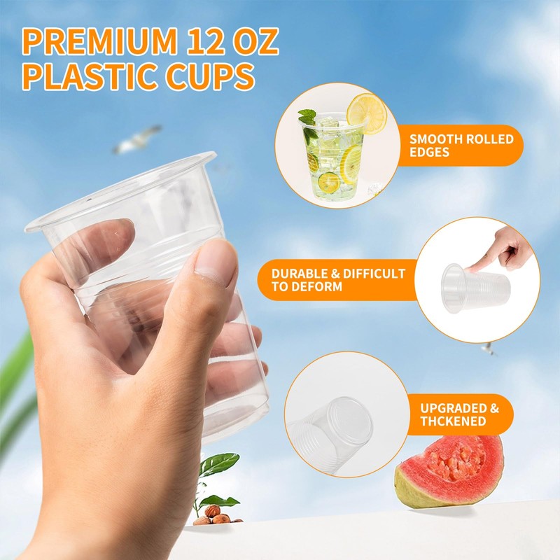- 【12 oz & 300 Pack】 – Each order comes with 300 disposable plastic cups, perfectly sized at 12 ounces, ensuring you have ample supply for your events, parties, or business needs and ideal for serving soft drinks, iced tea, cocktails, beer, and more.