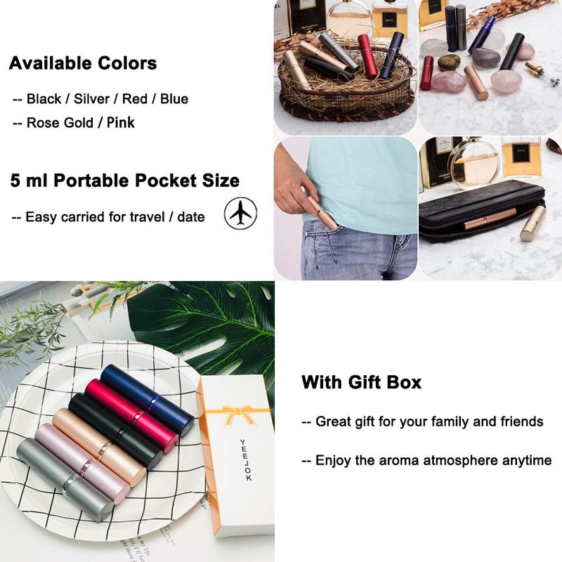 YEEJOK Travel Essentials for Women Men, Travel Perfume Bottles Refillable, Perfume Atomizer Spray Container, Mini Portable Easy Pump Refilled 5ml Bottle for Flying,Purse,Travel,Vaction Essentials