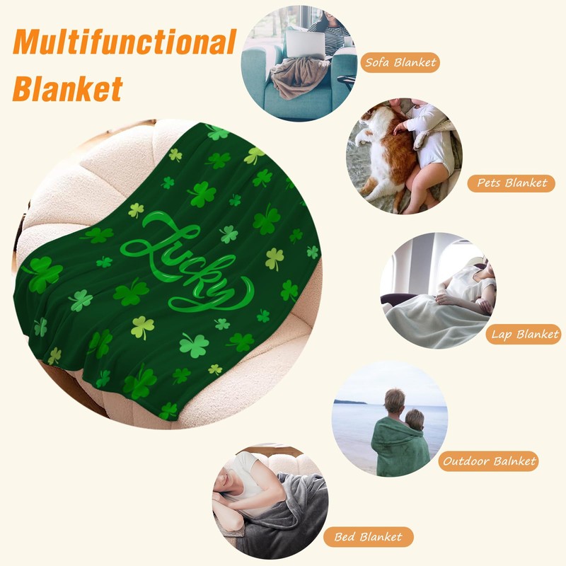 - 【Best Holiday Gift】: The plush St Patricks Day blanket is the best gift to women, men, girls ,boys and family for holiday. Besides, The lucky shamrocks throw blanket is also a lovely gift for your pets. The warm fuzzy fluffy blanket can be used as a couch sofa throw blanket, or as a bed blanket for extra warmth.