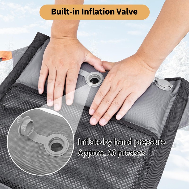 - ✔ QUICK INFLATION AND DEFLATION: no need to carry an air pump, just press the built-in air pump at the bottom of the cushion with your hand, about 10 times (the exact number of times may vary depending on individual circumstances) to complete the inflation. To deflate, you just need to pull out the deflating valve, it can be easily deflated, and it is very convenient to store