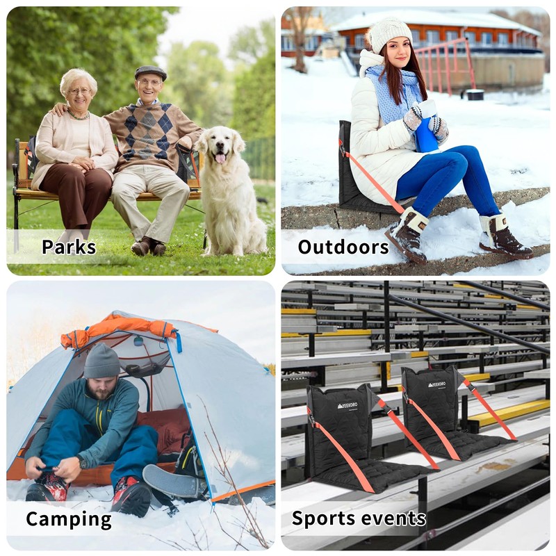 - ✔ EXCELLENT MATERIAL: The surface of the backrest layer of the heated stadium seats is made of “Chun Yafang” polyester fabric and 210D silver-coated fabric, with TPU fabric attached to the inner side for better sealing and to securely lock in air. The seat base is made of 420D nylon fabric, which offers high strength and excellent durability, with abrasion-resistant and tear-resistant properties. Whether for daily use or in more demanding environments, it is resistant to scratches and wear