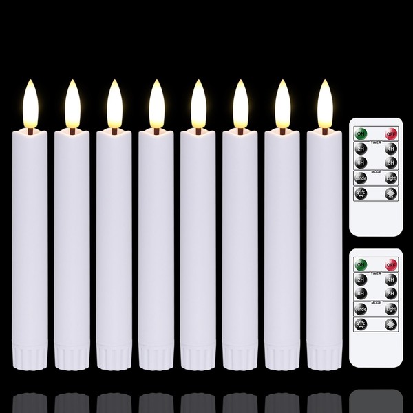 Yeelida Flameless Taper Candles with Two Remote Timer, 6.4" LED 3D-Wick Window Candles, Flickering Long-Lasting Electric Pack of 8 Flameless Candlesticks (0.78" Dia, White)