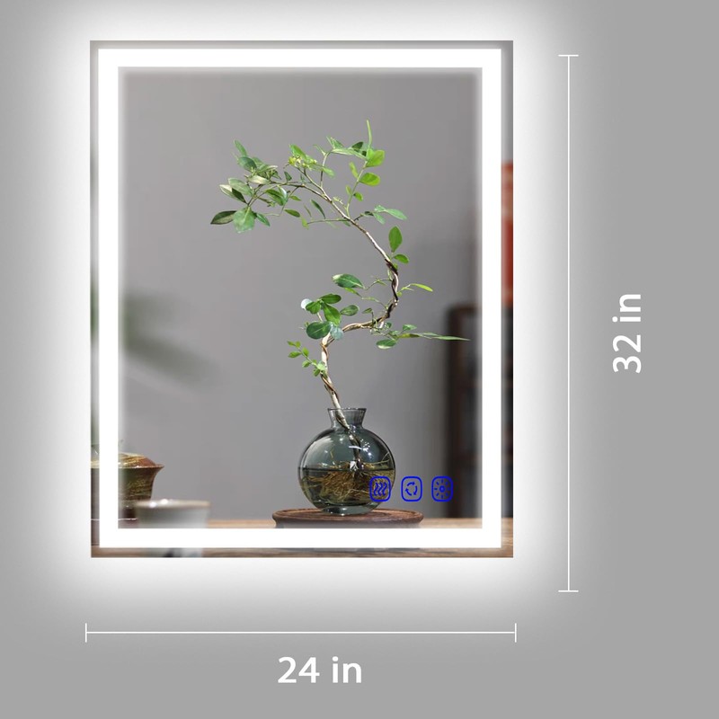 Yeeopp 32"x24" Vanity Mirror with Lights. Front & Backlit, LED Bathroom Mirror. Smart, Wall-Mounted. Stepless Dimmable. Adjustable Warm White/Natural/Daylight. Anti-Fog, Shatter-Proof Memory Function