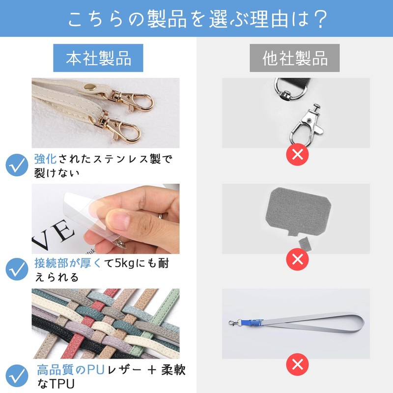 【Excellent Design】Made of high quality synthetic leather material, strong and durable, resistant to wear and tear. The maximum length of the neck strap is about 140cm, the diameter is about 0.8cm. The length is easily adjustable and can be worn over your neck or diagonally. The width is ergonomically designed and not too thick or too thin, light and comfortable.