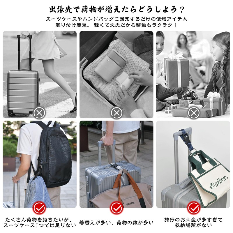 - 【Occasions】You can attach your travel bag or handbag to your suitcase. Fits most suitcases with handles. It is very convenient for business trips, domestic travel, overseas travel, and carrying caster bags on trains or planes. The secret of the popular is its compact size, and when not in use, it can be folded into a travel bag