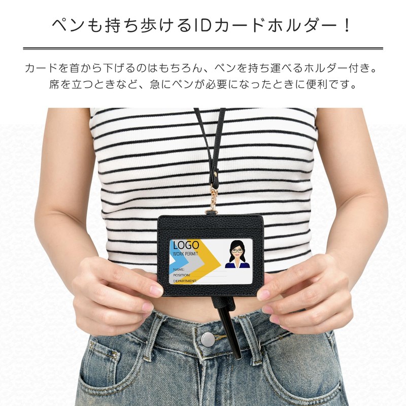 Yeepan Women's ID Card Holder, Pass Case, Card Case, Name Holder with Pen Holder, Employee ID Case, Strap, 2 Pockets, Card Storage, Coin Purse, Name Holder, Horizontal ID Card Holder, Commuter Holder,