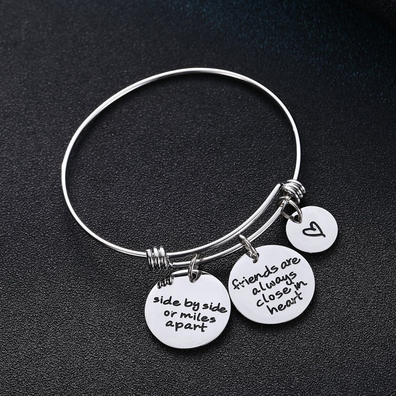 - Stainless Steel Side By Side Or Miles Apart Best Friends Are Always Close at Heart Sister Friend Jewelry Bracelet.