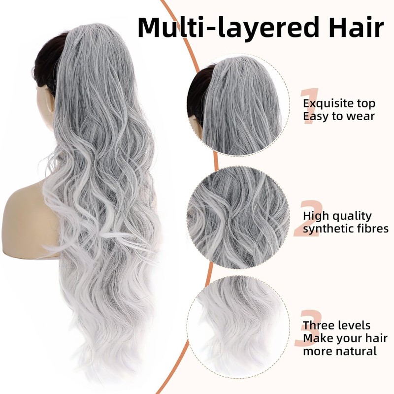 YEESHEDO Ponytail Hairpiece Clip Extensions with Drawstring Long Wavy Black Mix White Hair Extensions Natural Wig Afro Curly Ponytail for Braid (2#)