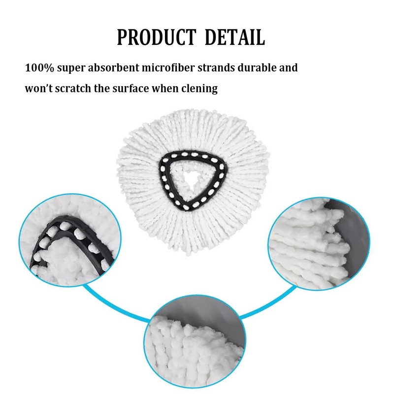 - 【High Quality Replacement Mop Heads】: Made of 100% high-quality microfiber, durable and machine washable. This spin mop replacement head refill won't scratch the surfaces you're cleaning, which can help you remove and absorb tough dirt and grime effortlessly.