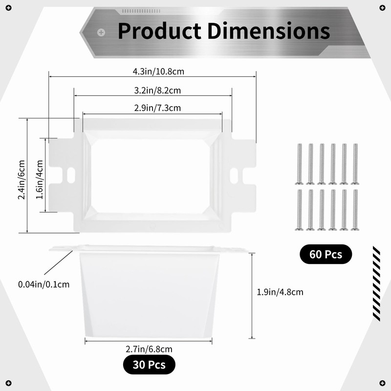 - Sufficient Quantity: The package includes 30 electrical box extenders and 60 screws to create 30 sets of 1-gang box extenders; the ample quantity meets your daily use and replacement needs, saving time and money from having to purchase again