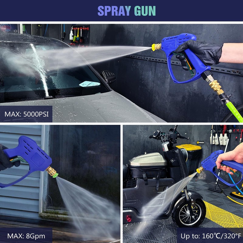 - 【360° SWIVEL PREVENT HOSE KINKING】 Handheld pressure washer spray gun keeps the long hose from tangling when you cleaning the garden, motorcycle, house, campers or RV. stubby pressure washer gun with stainless steel swivel bottom and won't rust. car wash foam gun swivel is O-ring sealed with no leaks and swiveled under pressure.