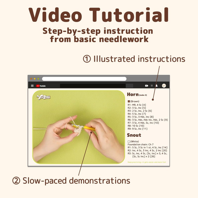 • SLOW-PACED TUTORIAL: Our tutorials are designed for beginners. The step-by-step instructions in the videos and the pattern breakdowns in the manual make it easy to master your crochet skills. Learn how to DIY a cute amigurumi.