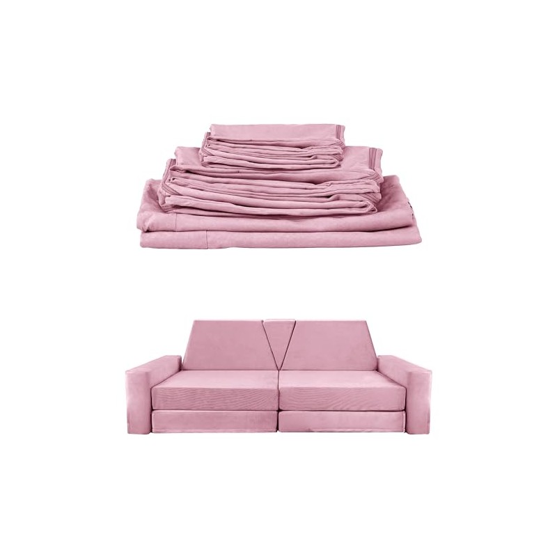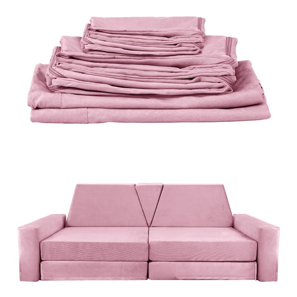 YEFU Replacement Cover for 15pcs Modular Kids Play Couch, Washable Premium Velvet Fabric, Cover Only, Foam not Included, Light Pink