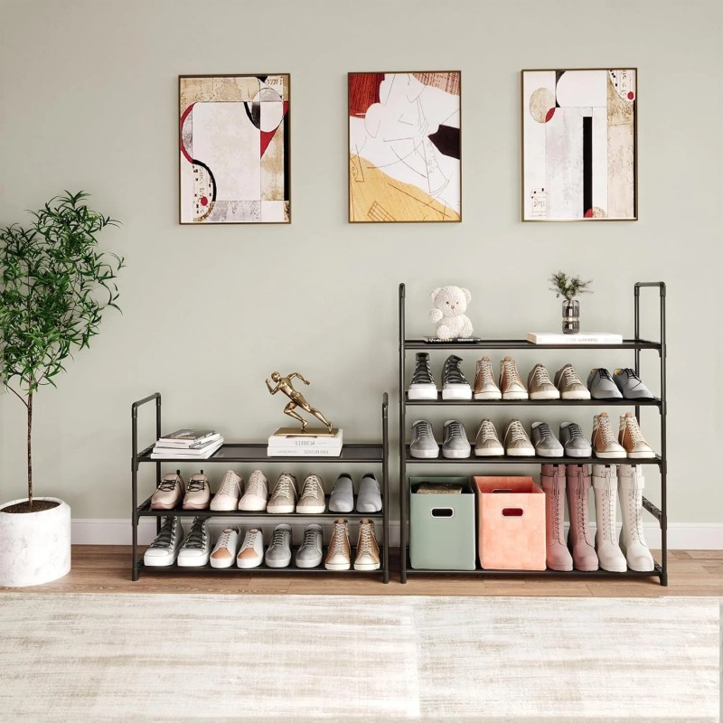 3-Tier Shoe Rack, Stores 12-15 Pairs of Shoes, Stackable & 3-Tier-Black