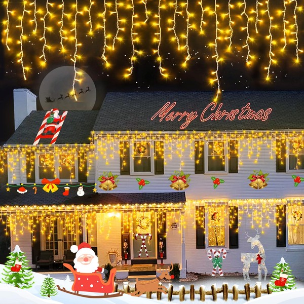YEGUO 33ft 400 LED Icicle Lights Outdoor, 80 Drops Icicle Christmas Lights Connectable, 8 Modes Warm White Xmas Icicle Lights with Timer Indoor