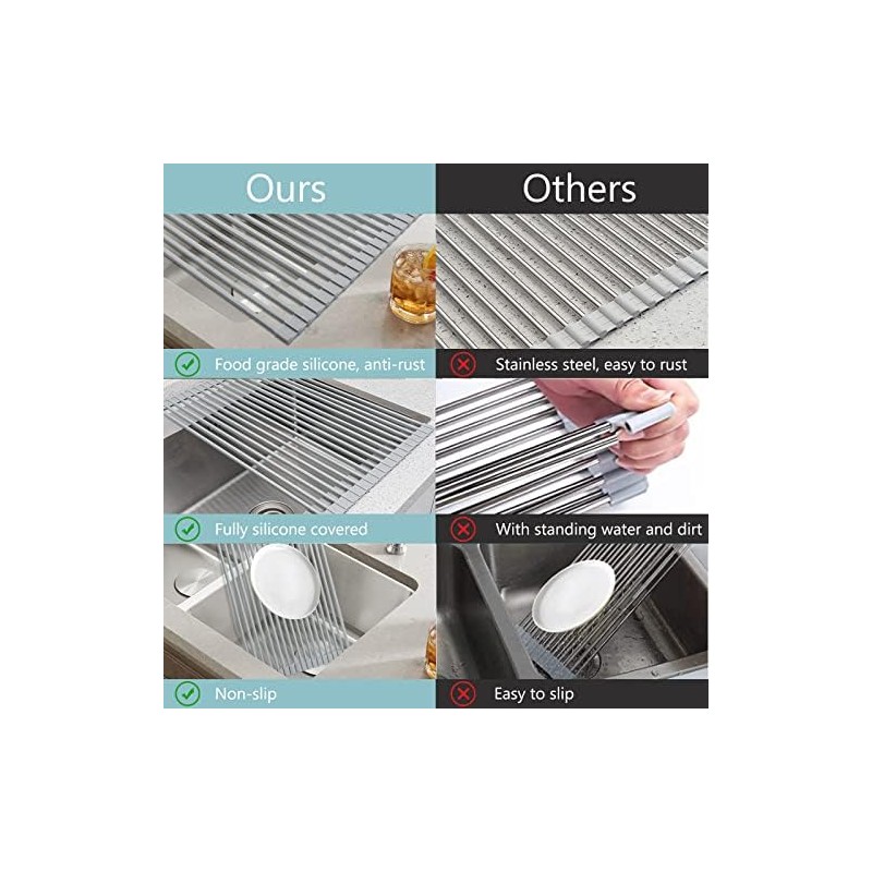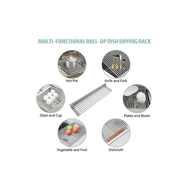 - 🍇UPGRADED DESIGN: Our sink dish drying rack comes with a removable utensil holder. Forks and spoons can be stored in the storage basket. Compared with other dish drying racks, our roll-up dish drying rack can be dried more things