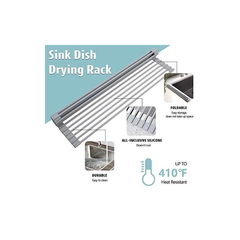 - 🍒DURABLE AND HEAT-RESISTANT: Our sink dish drying rack is made of food-grade silicone and steel. The full silicone cover is rustproof and non-slip, and it can withstand temperatures up to 410°F, so you can use it to cool hot baked foods