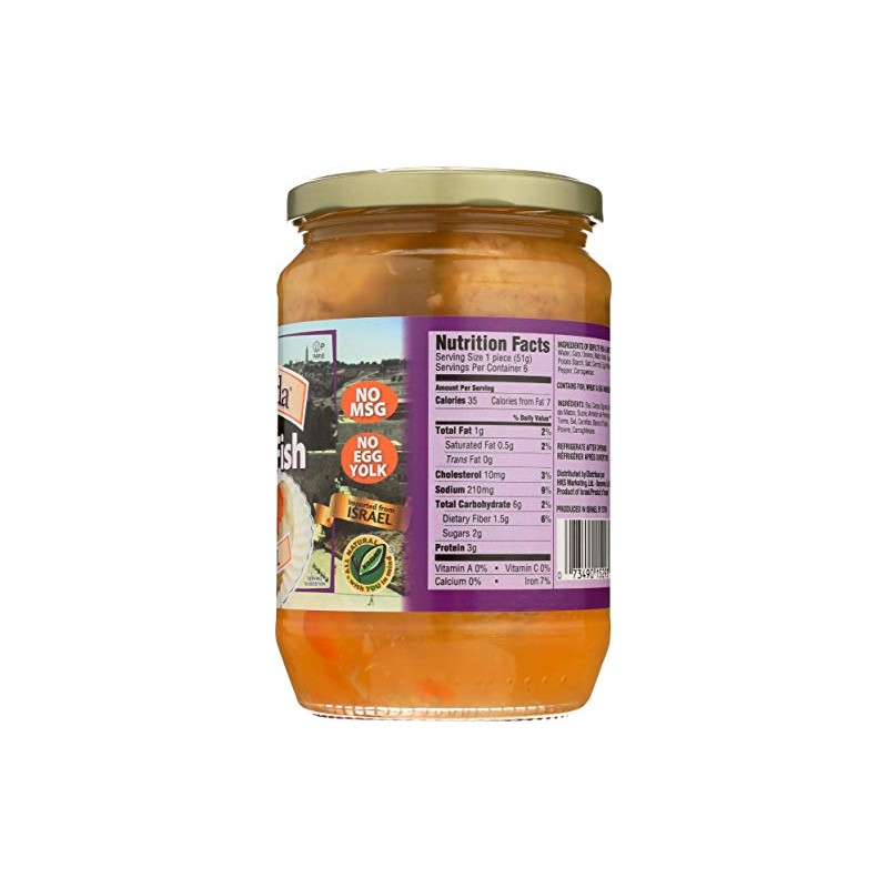 - Yehuda Gefilte Fish contains no egg yolk or MSG, so you can feel good about the food on your table