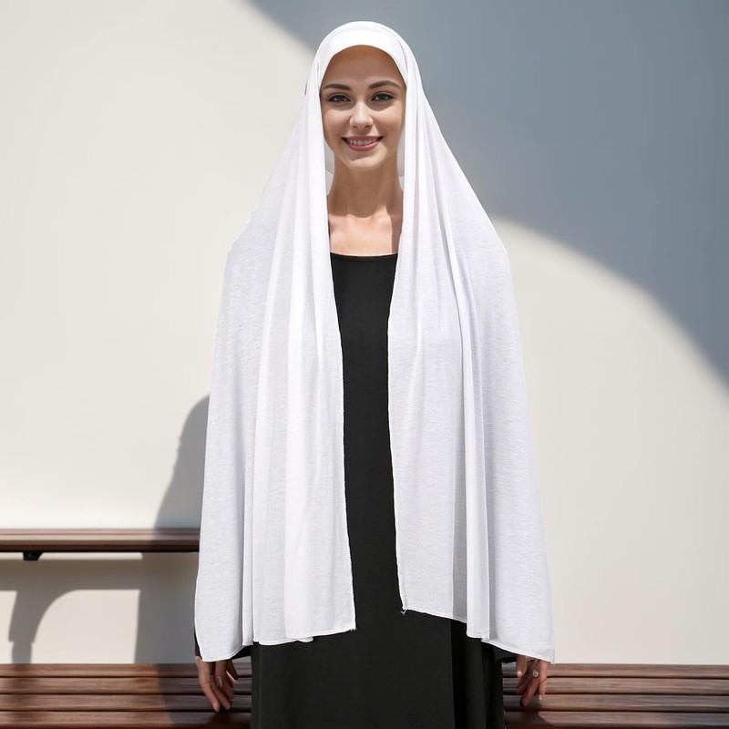 - Delicate sewing:Jersey hijab scarf sewn with a cap.This instant hijab with Cap is easy to wear.Simply wrap your head, and the stretch knit provides a secure hold.Lift the chiffon scarf and you can wear it as you like