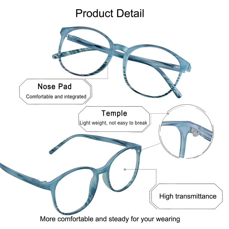 - Blue light blocking: cut off 85% blue light, reduce eyestrain and enjoy a better sleep. Special anti-reflective coating helps limit the glare and additional strain artificial lights can put on your vision.