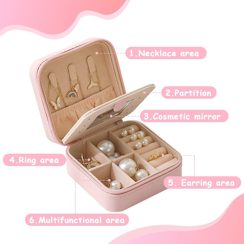 - đź’—High-quality workmanship: the selected high-quality leather and exquisite hardware buttons ensure that the jewellery box is durable. The fresh pink colour makes the jewellery box more beautiful and durable.