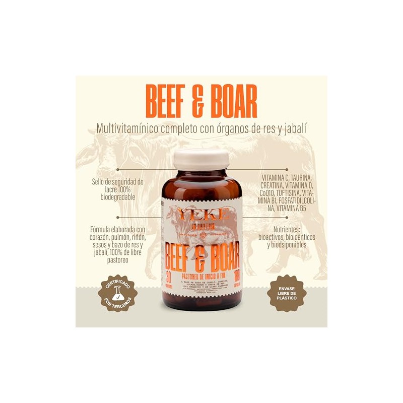 YEKE Beef Boar - Mezcla Integral A Base de rganos Clave De Res Y Jabal - 100 Orgnico Y De Libre Pastoreo - Con Vitaminas C y D, Omega-3, CoQ10,...