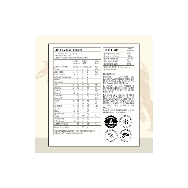 🌟 ⭐ YEKE Beef & Boar - Mezcla Integral A Base de Órganos Clave De Res Y Jabalí - 100% Orgánico Y De Libre Pastoreo - Con Vitaminas C y D, Omega-3, CoQ10, Taurina, Creatina Y Complejo B - 180 Cápsulas - Sin OGM Y Alta Biodisponibilidad ⭐ 🌟