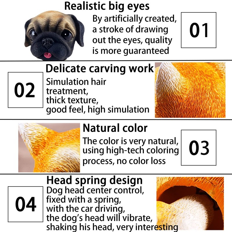 - Easy to use: car wobble head does not need any other energy, because it contains a spring device, as long as there is a small slight vibration, it will shake its head or nod its head, very cute.