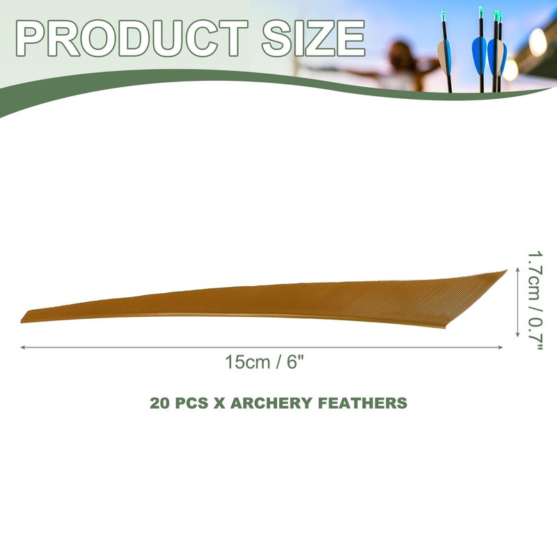 • PACKAGE SPEC - Color: Brown; Material: Turkey Feather; Length: 15cm / 6 inch; Width: 1.7cm / 0.7 inch; Packing List: 20Pcs x Archery Feathers