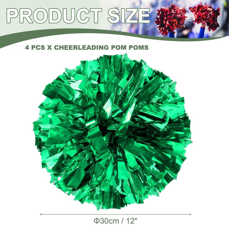 - PACKAGE SPEC - Color: Green; Material: Metallic Foil, PET; Diameter: 30cm / 12 inch; Packing List: 4Pcs x Cheerleading Pom Poms