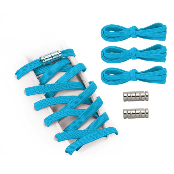 YELARXI No Tie Shoelaces Tieless Elastic Shoe Laces, 39" with 2 Metal Locks Buckles Fit for Adults Sneakers (3Pcs, Light Blue)
