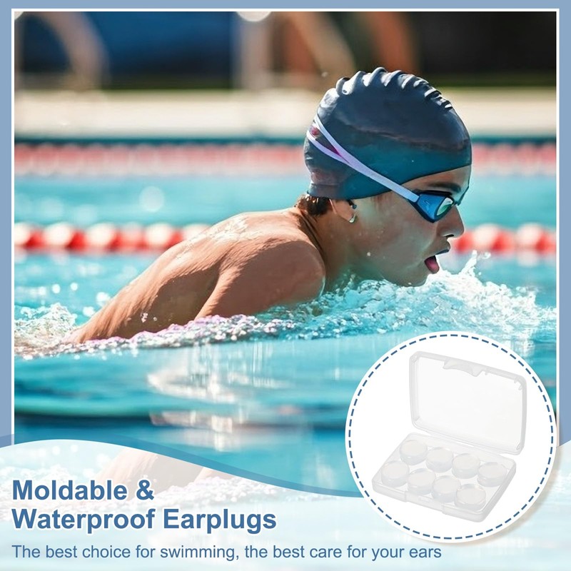 • KEY POINTS-Noise-blocking Comfort- The silicone earplugs for sleeping can achieve a perfect fit for uninterrupted sleep. Enjoying the ultimate in noise-blocking comfort with the moldable earplugs. Achieve restful sleep and wake-up feeling energized. Waterproof Ear Protection- These silicone earplugs have a good waterproof function, which can protect your ears from water when swimming, showering, or other water sports. Enjoy worry-free swimming with the ear plugs. Designed to protect your ears fr