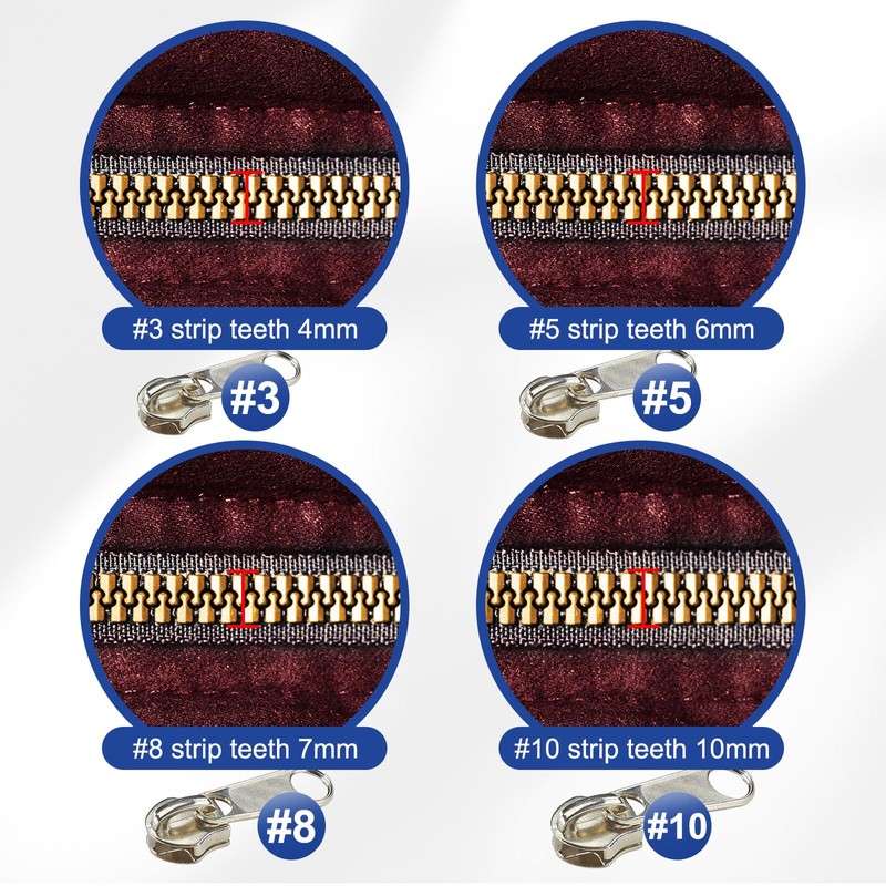 - EASY-TO-USE- A U-shaped stop locks the top of the zipper. Use the correct size of new sliders to fix the zipper. You can install it with some tools like a pair of pliers or glue. Check the size and color before ordering: It is recommended that you use #3 #5 for repairing some small bags or wallets, and #8 #10 for repairing coats, tents, or canvas.