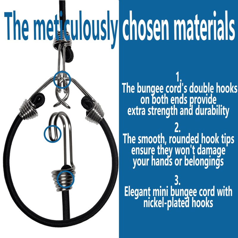 - 【Safety】With strong elasticity, it's important to handle both ends of the metal hooks carefully and keep them away from your face to prevent accidents.