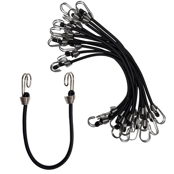 YELIER Mini Bungee Cords with Hooks. (12pcs, Black, 10") Small Bungee Cords with Hooks, Versatile Outdoor Bungee Cord Set.