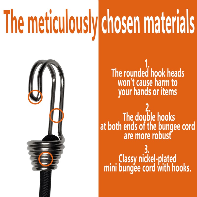 - 【Hooks】The double hooks at both ends of the bungee cords are sturdier than single-hook ends, providing extra security and durability.