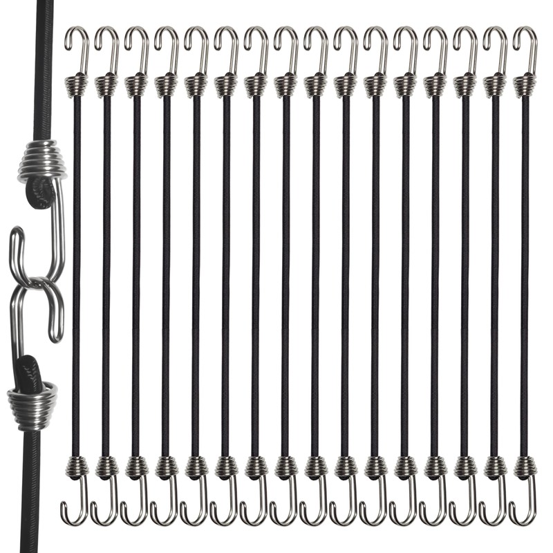 YELIER Mini Bungee Cords with Hooks (16, Black, 10"). Versatile Outdoor Bungee Cord Set. 10inch, Totaling 16pcs Small Bungee Cords with Hooks