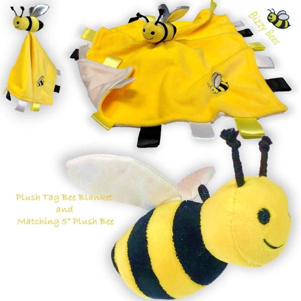 - This cute little honey bee baby tag security blanket and 5" plush bee with crinkle wings will melt your heart!