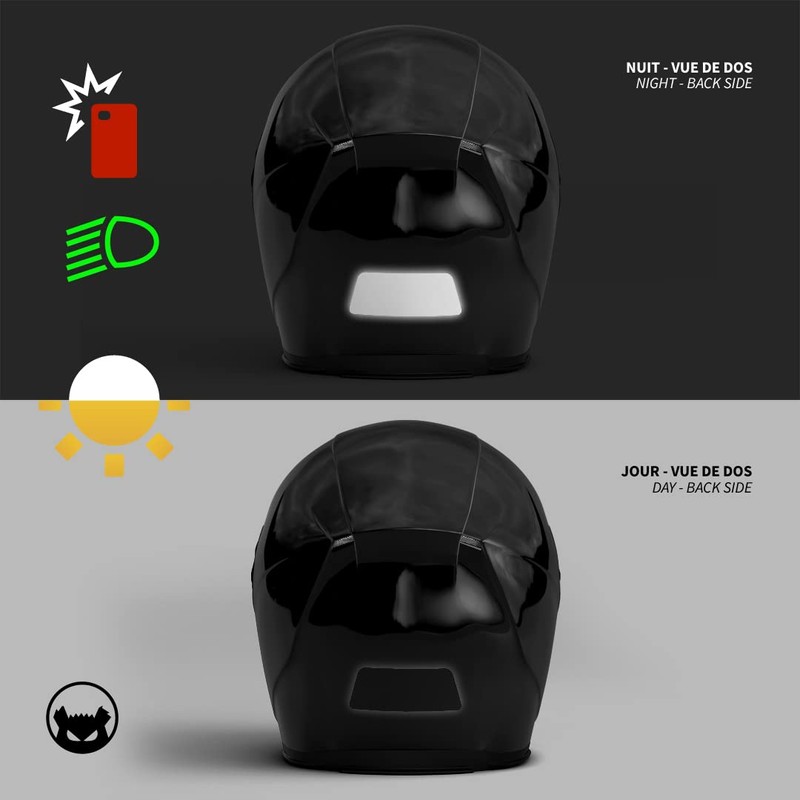 • - Conforms to the French standard and requires the installation of 4 reflective stickers on your helmet.