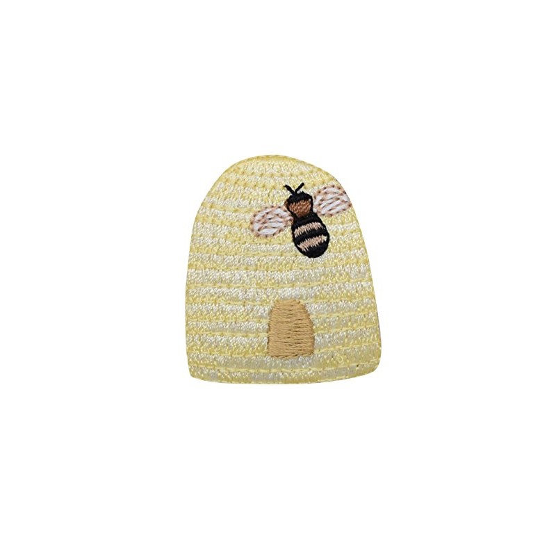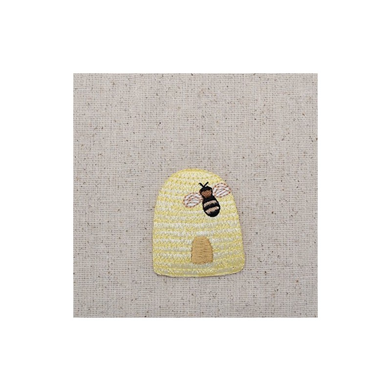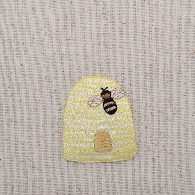 Yellow Beehive - Brown Honey Bee - Hive - Embroidered Iron on Patch
