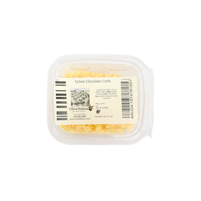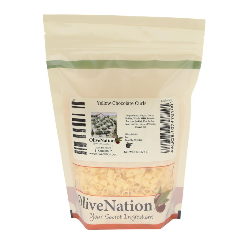 - OliveNation Yellow Chocolate Curls, Yellow Chocolate Curls Topping, Edible Decoration, Non-GMO, Gluten Free